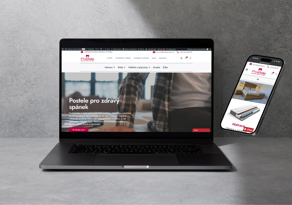 Moderní e-shop zaměřený na kvalitní spánek. Vytvořili jsme přehlednou strukturu kategorií, jednoduché filtrování produktů a čistý design, který zákazníkům usnadňuje výběr postele či matrace. Web je optimalizovaný pro mobil a připravený na růst objednávek.